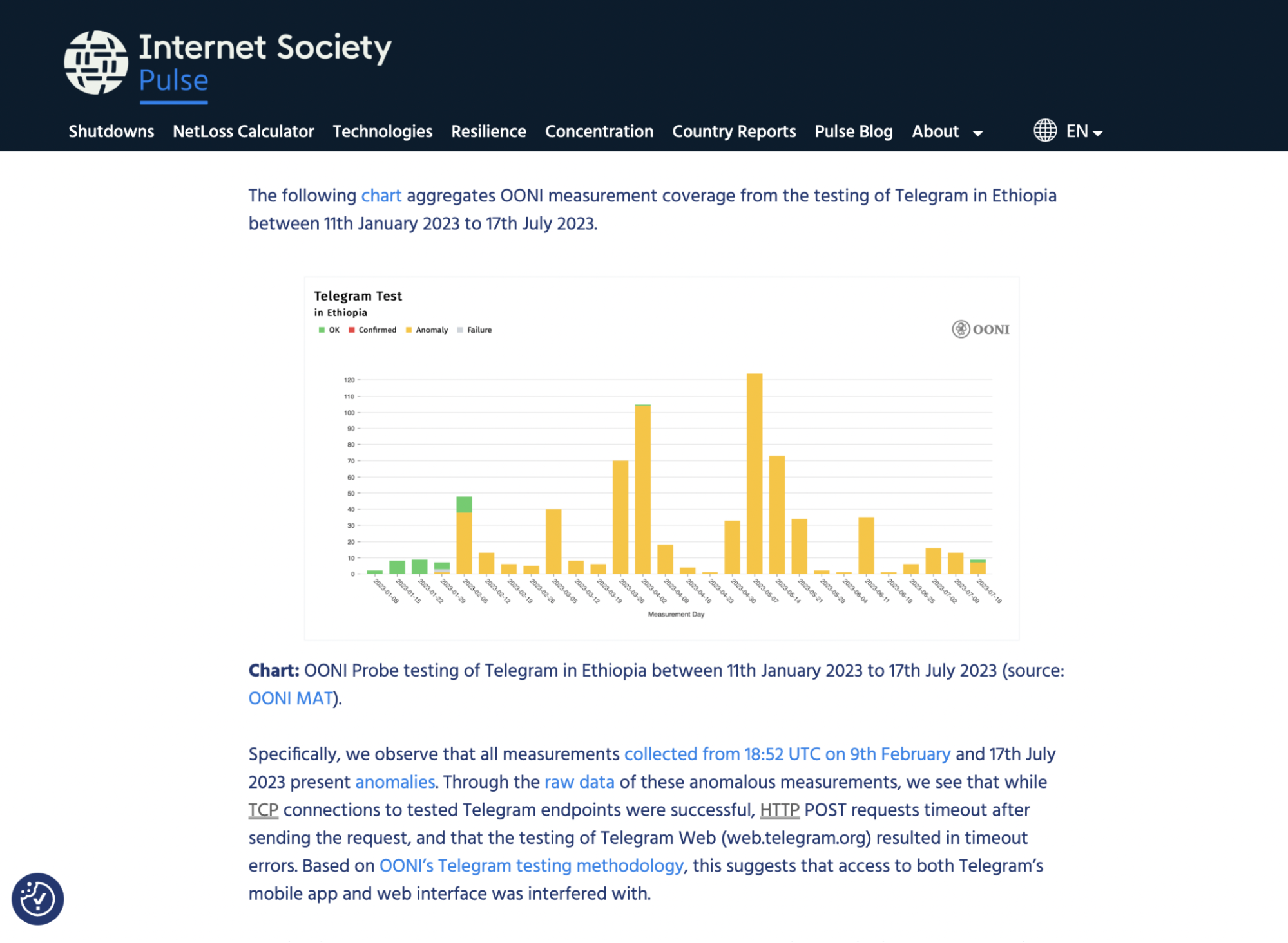 - Access Now’s press statement on the blocking of Telegram in Kenya. In response to the blocking of Telegram in Kenya, Access Now published a press statement which cites OONI data.