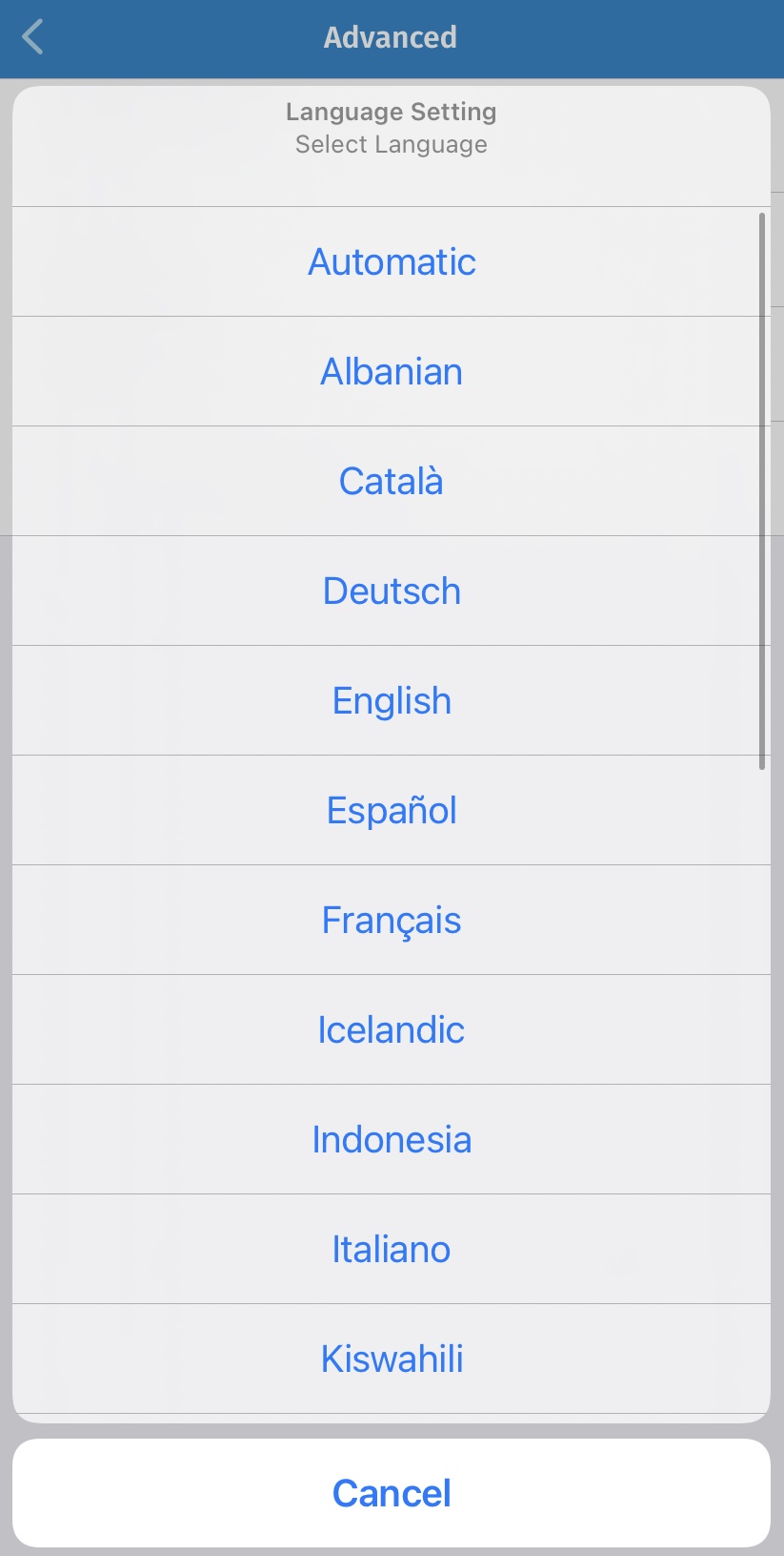 Шаг 3. Измените язык приложения OONI Probe, нажав Выбрать язык.
