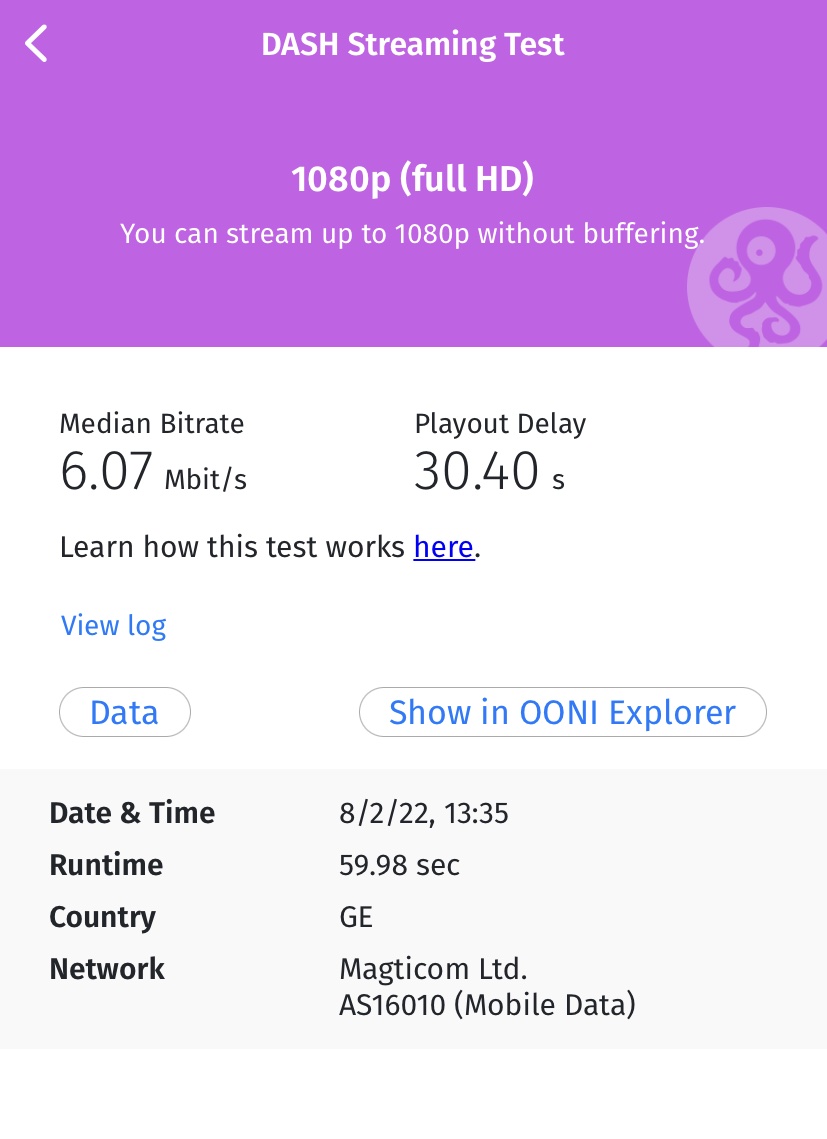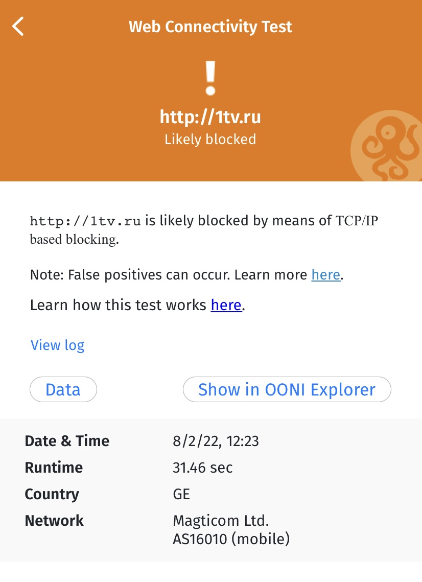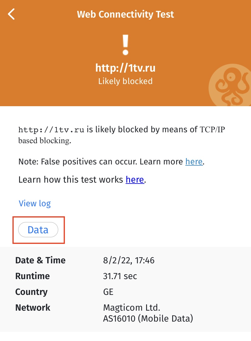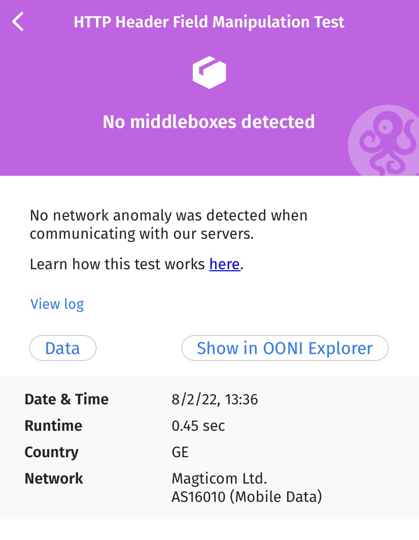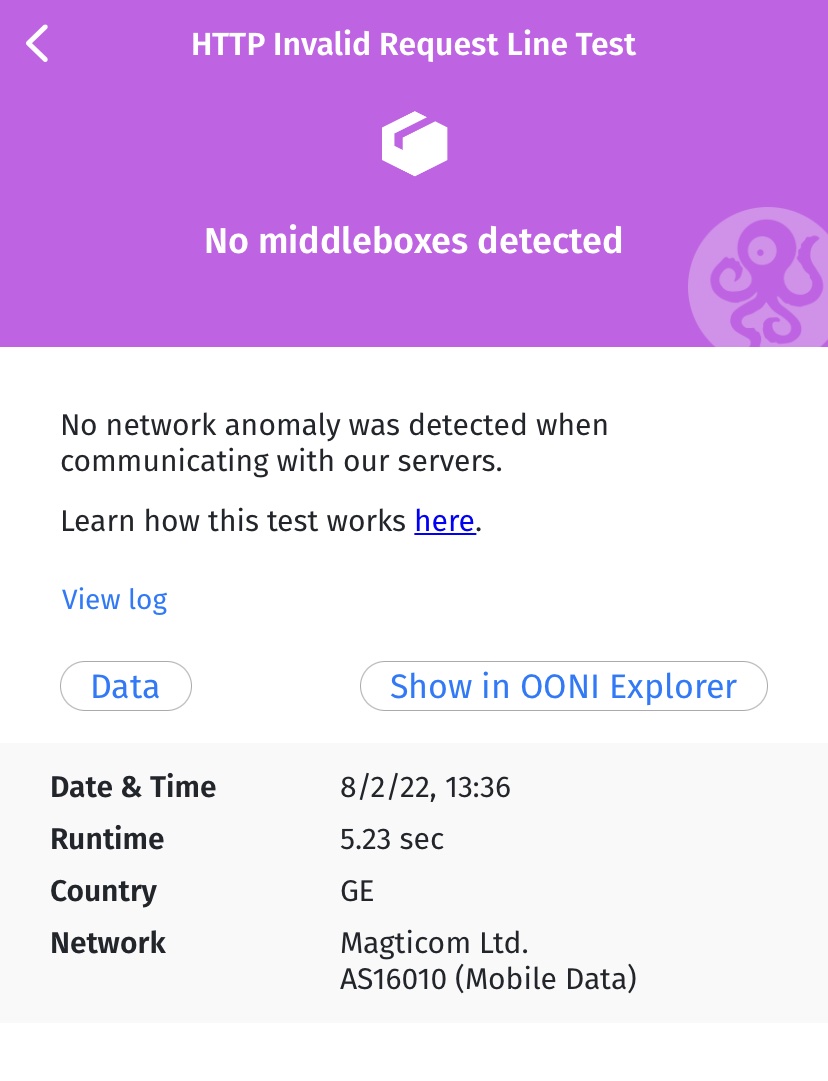 AS16010for Magticom Ltd.); - Данные о тестах (которые зависят от теста OONI Probe).