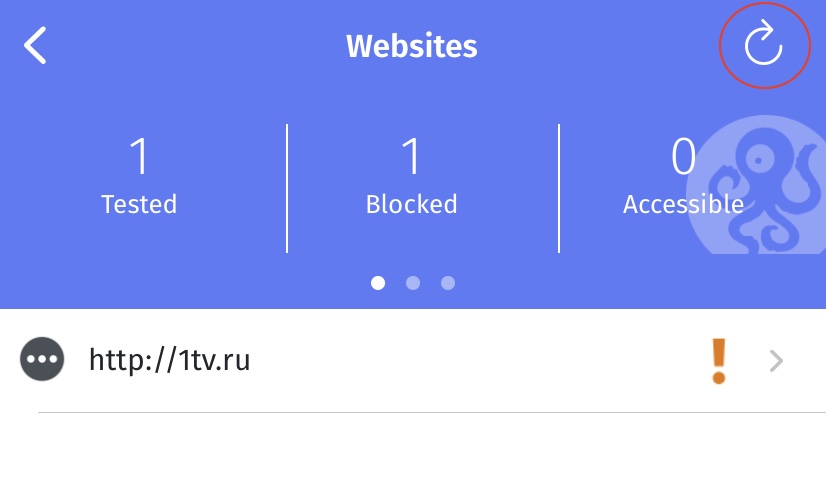 Примечание. Когда вы нажмете кнопку «Старт» (в главном меню или на карточке Сайты), OONI Probe протестирует столько сайтов, сколько сможет протестировать за 90 секунд. Сайты, которые проверяются в течение этого времени, выбираются случайным образом из глобального списка и списка по странам. Каждый раз, когда вы нажимаете «Старт», вы будете проверять новую случайную выборку сайтов. Следовательно, чем больше раз вы нажмете «Старт», тем больше сайтов вы протестируете.