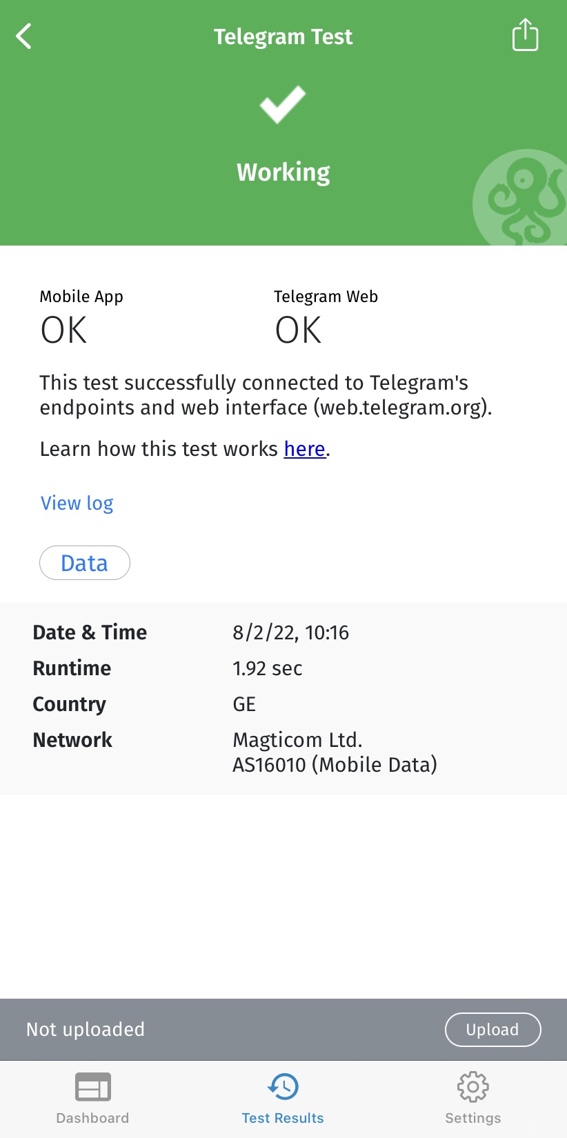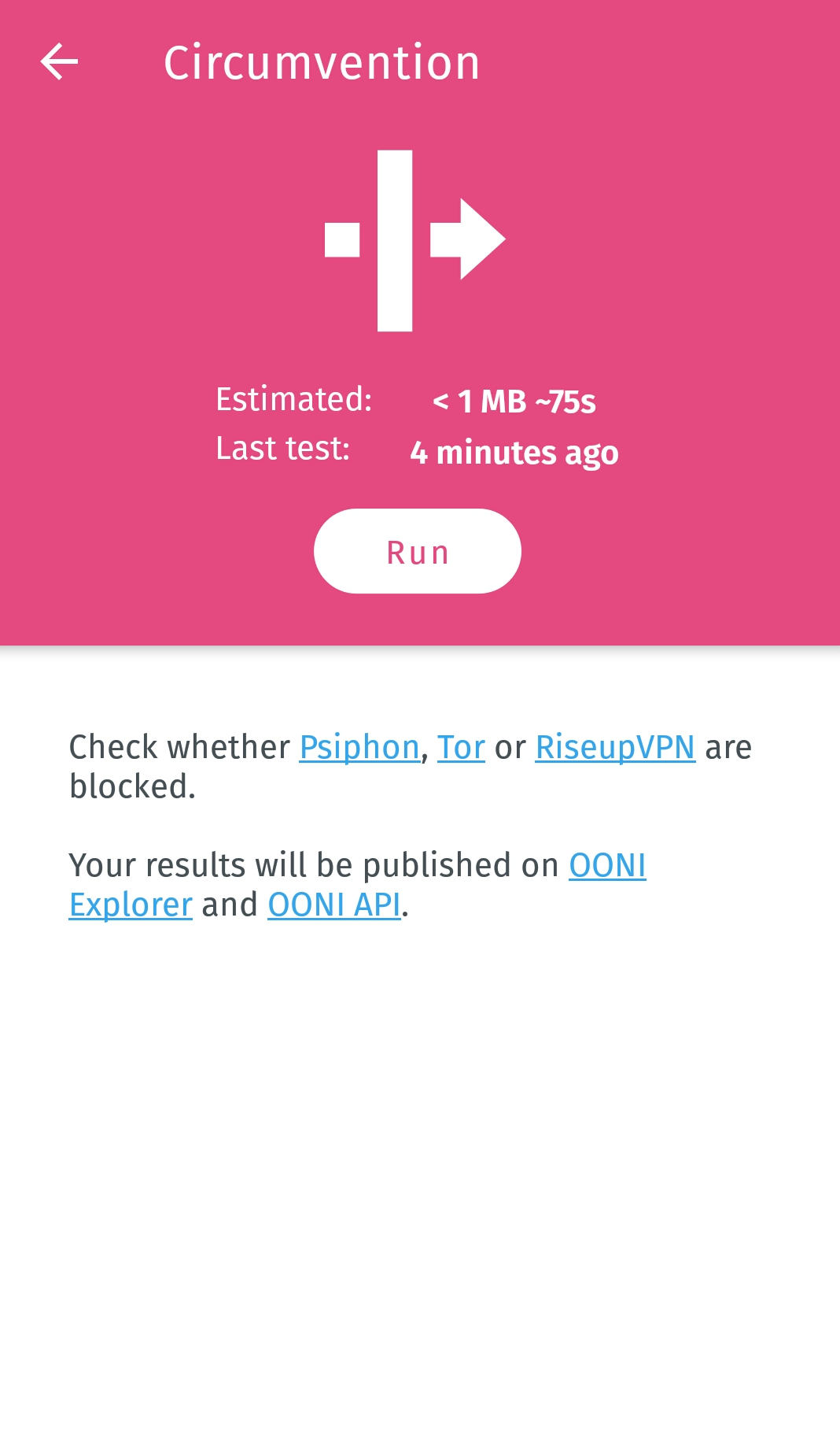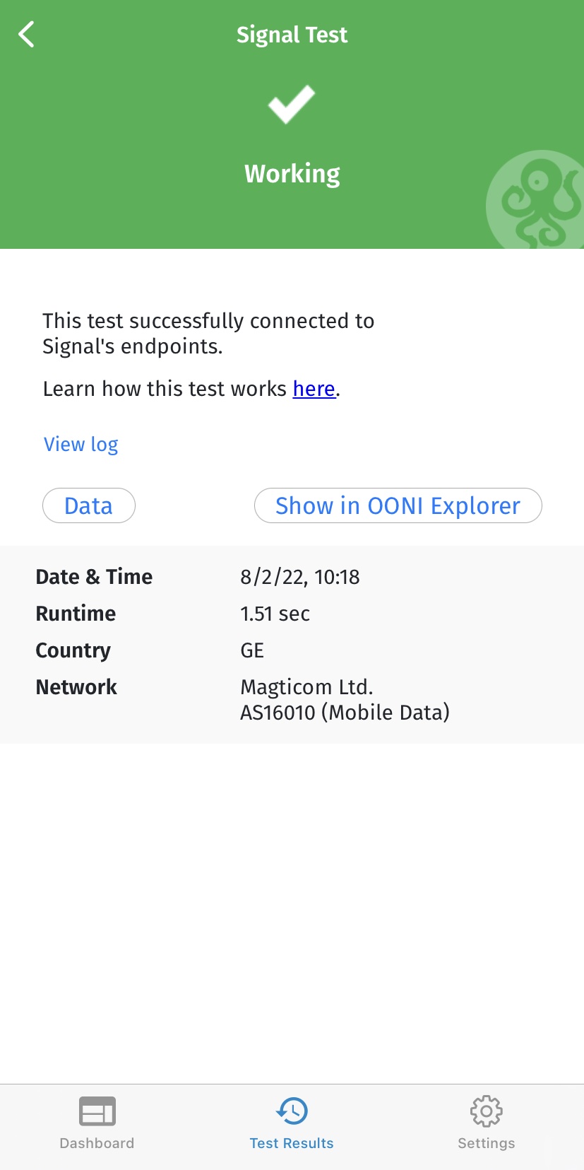 Как только тестирование завершится, результаты ваших тестов OONI Probe будут автоматически опубликованы в OONI Explorer и в OONI API.
